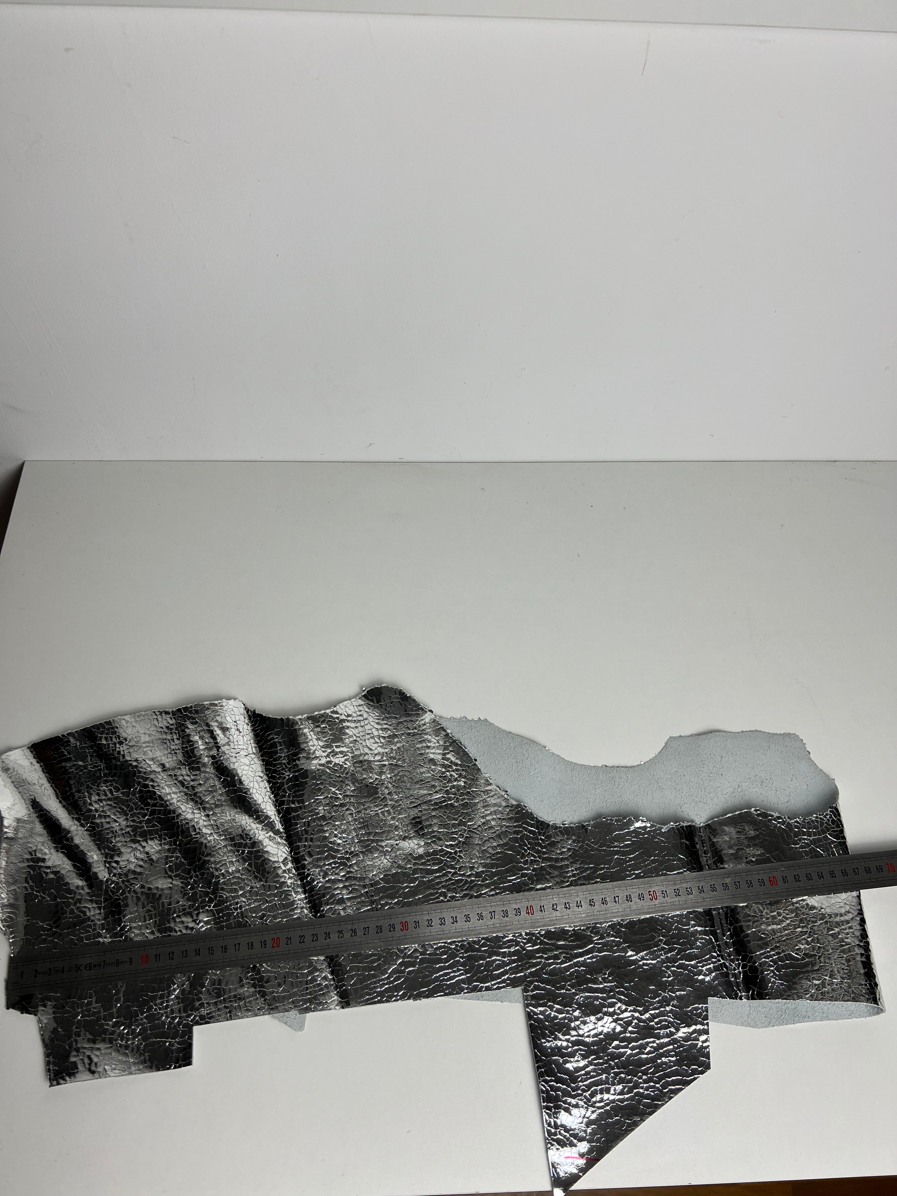 • 0.8 kg | 1.8 lb of Pieces of leather which is in photos- Silver leather Cracked Mirror finish look.