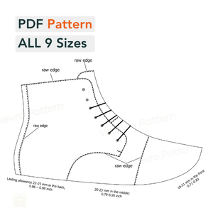 Patrón digital zapatos A4 - Carta PDF, Cordones Bota casual hombre, 9 tallas